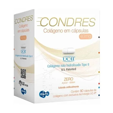 Condres são colágenos tipo II em cápsula, não hidrolisados, ou seja, colágenos praticamente puros, sem nenhuma alteração molecular. Essa substância bioativa auxilia na manutenção da função articular, e, de acordo com evidências científicas, seu consumo está relacionado à redução de dores e melhora no movimento.